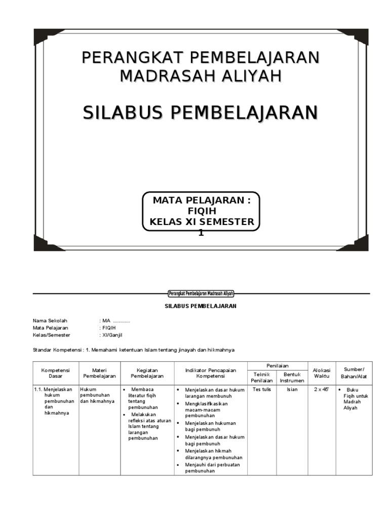 Silabus pai-sma-kls-x-xi-xii- 2013 from image.slidesharecdn.com Pengertian silabus silabus adalah rencana pembelajaran pada suatu dan/atau kelompok mata pelajaran/tema tertentu yang mencakup standar kompetensi , kompetensi dasar, materi pokok/pembelajaran, kegiatan pembelajaran, indikator pencapaian kompetensi untuk penilaian. Mengidentifikasi bunyi, ujaran (kata, frasa atau kalimat) dalam suatu konteks dengan mencocokan, menjodohkan dan membedakan secara tepat. Dalam silabus fiqih ma kelas x, xi, xii ini memuat rincian kd, materi pembelajaran, dan aktivitas pembelajaran. Silabus akuntansi keuangan kls xi dan xii. 1 memahami ungkapanungkapan dasar pada interaksi sosial untuk kepentingan kehidupan. Perangkat pembelajaran fiqih terdapat beberapa komponen antaranya, silabus fiqih, rpp fiqih, program tahunan fiqih, program semester fiqih. Materi pembelajaran 3 indikator 4 1.1.1.mencocokan. Silabus fiqih kls.x smt i dpt didownload disini silabus fiqih kls.x smt ii dpt didownload disini silabus fiqih kls.xi smt i dpt didownload disini silabus fiqih kls.xi smt ii dpt didownload disini silabus fiqih.